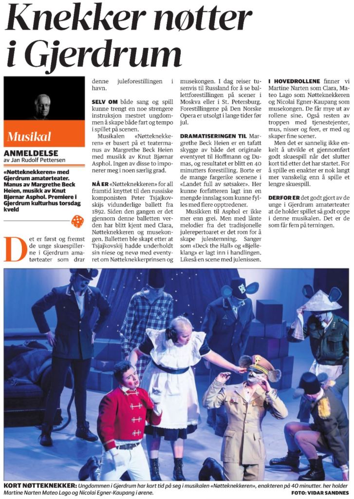 Romerikes Blad var på premieren av Nøtteknekkeren og de trekker fram ungdommenes innsats. Det liker vi!