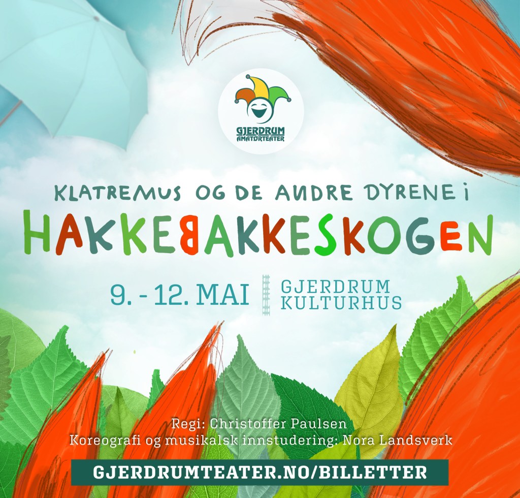 Forestillingen spilles på Gjerdrum kulturhus 9. til 12. mai og har innlagt pause med kiosksalg. Vi ønsker store og små velkommen til en opplevelse sammen med Klatremus, Mikkel og resten av gjengen i Hakkebakkeskogen!